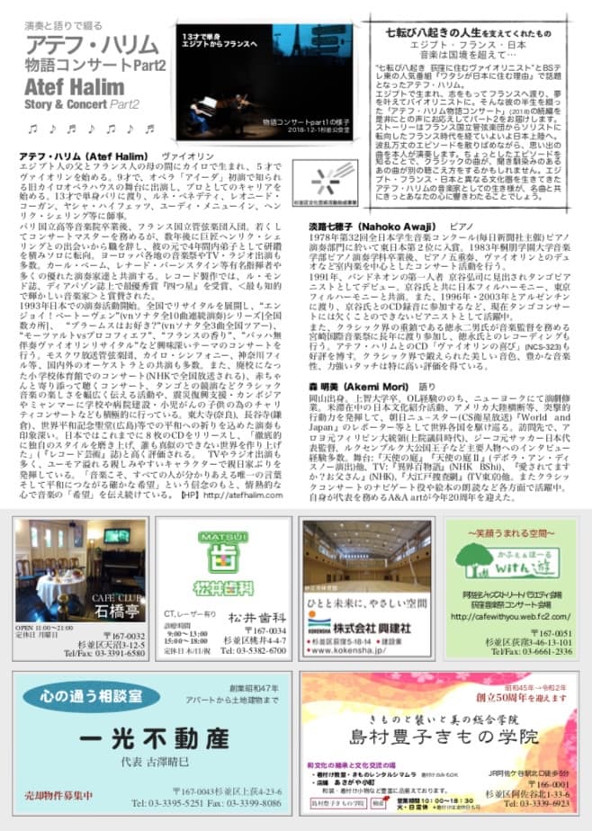出演:アテフ・ハリム(vn)、淡路七穂子(pf)、森明美(お話)