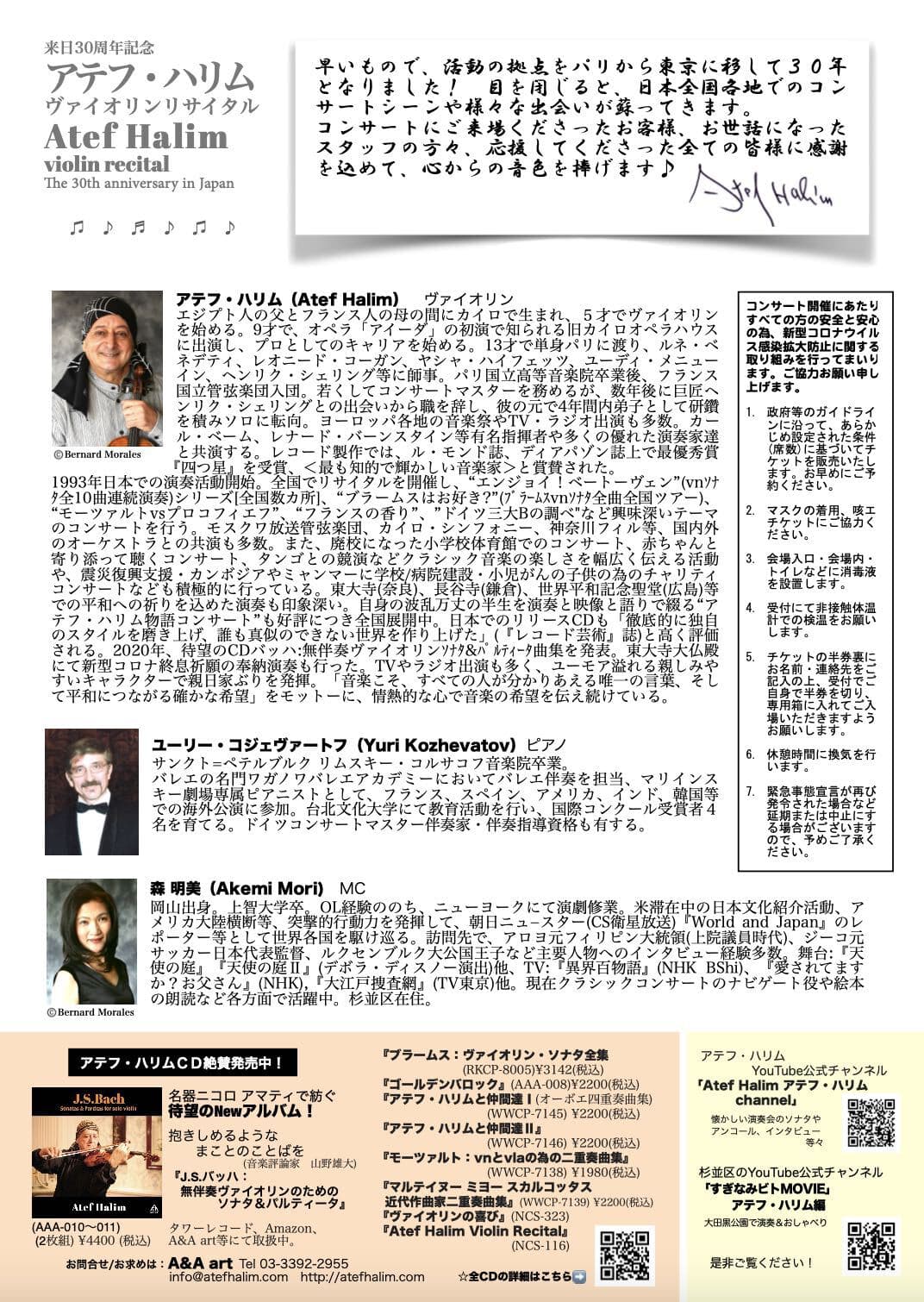 出演:アテフ・ハリム(vn)、ユーリ・コジェヴァートフ(pf)、森明美(MC)