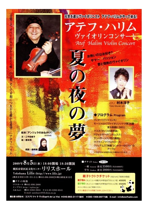 出演者:アテフ・ハリム(ヴァイオリン) 村木洋子(ピアノ) 森明美(朗読・司会)