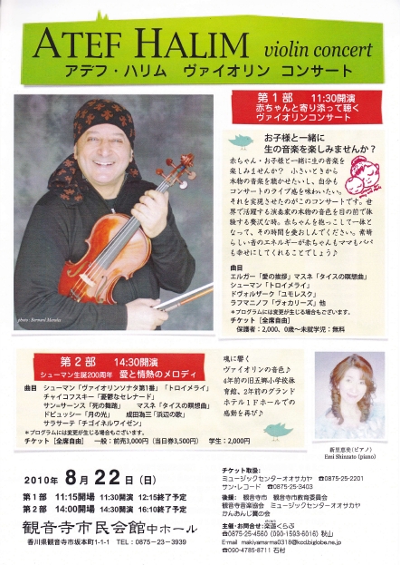 出演:アテフ・ハリム(vn)、新里恵美(pf)、森明美(MC)