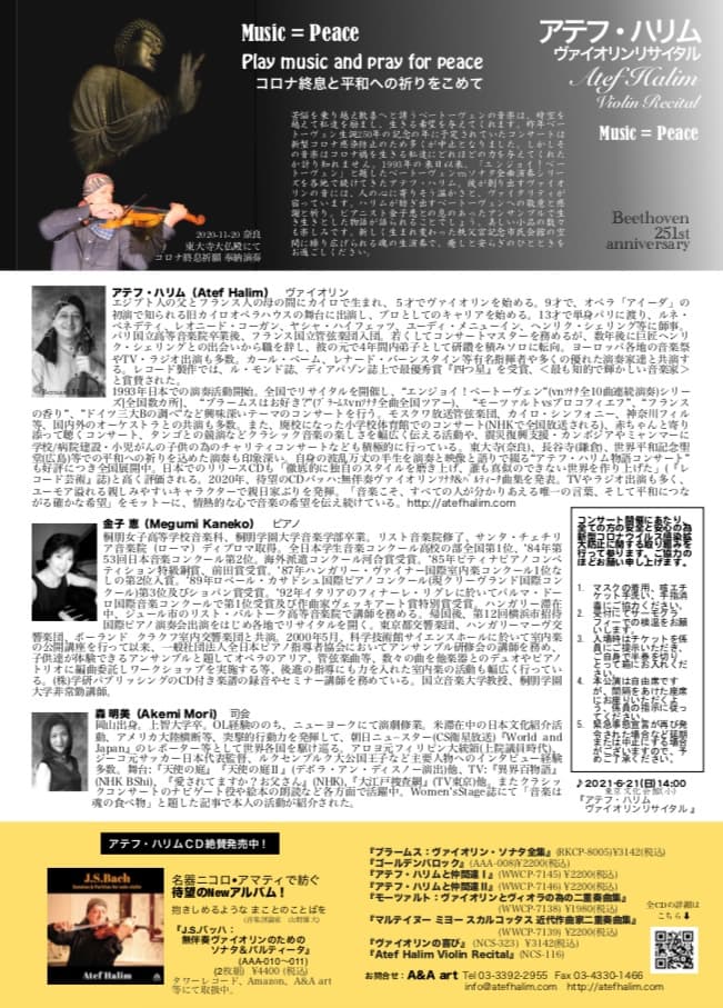 出演:アテフ・ハリム Atef Halim(vn)、金子恵 Megumi Kaneko(pf)、森明美 Akemi Mori(MC)