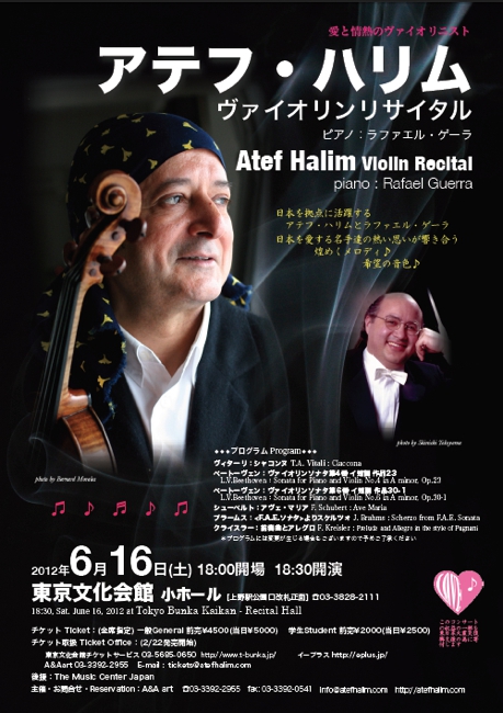 出演:アテフ・ハリム(vn)、ラファエル・ゲーラ(pf)、森明美(MC)