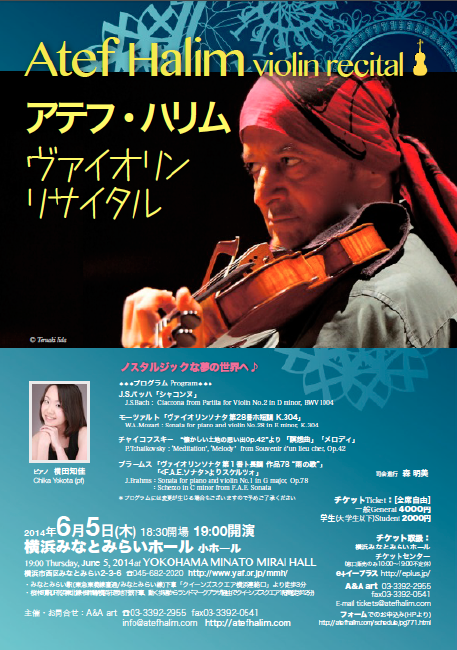 出演:アテフ・ハリム(vn)、横田知佳(pf)、森明美(MC)