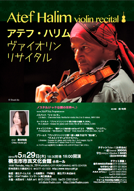 出演:アテフ・ハリム(vn)、横田知佳(pf)、森明美(MC)