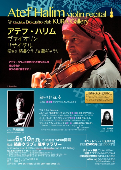 出演:アテフ・ハリム Atef Halim(vn)、平沢匡朗 Masaaki Hirasawa(pf)、森明美 Akemi Mori(MC)