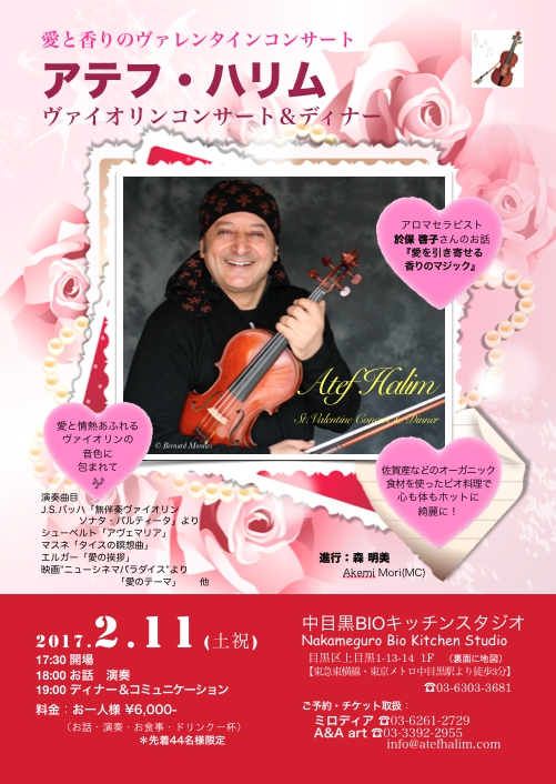 出演:アテフ・ハリム(vn)、於保啓子(アロマセラピスト)、森明美(MC)
