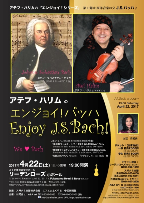 アテフ・ハリムの「エンジョイ!シリーズ」、福山での第1弾はJ.S.バッハを取り上げます♪