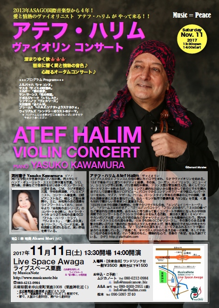 出演:アテフ・ハリム(vn)、河村泰子(pf)、森明美(MC)
