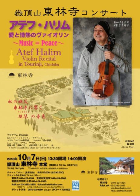 秋の秩父、東林寺に響く愛と情熱溢れるヴァイオリンの音色をどうぞお楽しみに!