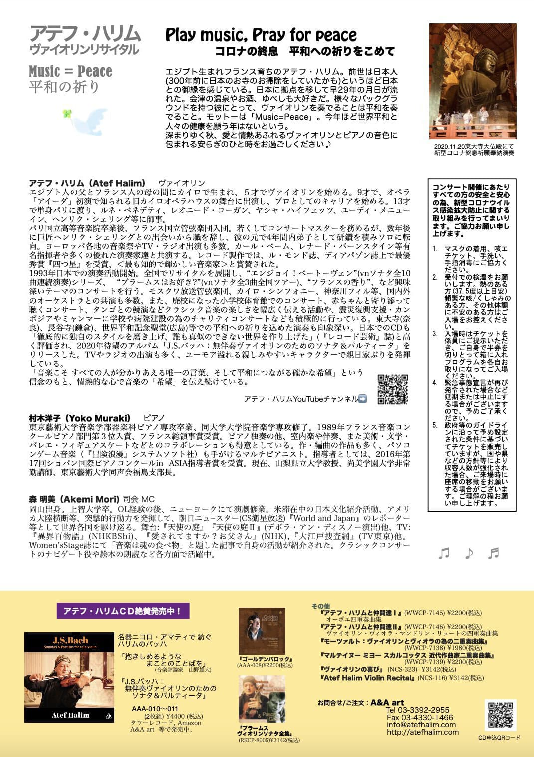 アテフ・ハリム ヴァイオリンリサイタル Music = Peace 平和の祈り