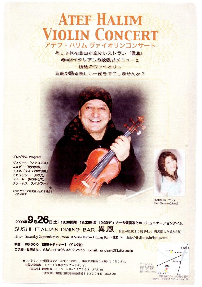出演者:アテフ・ハリム(ヴァイオリン) 新里恵美(ピアノ) 森明美(司会)