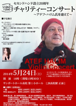 カンボジアの医療支援・自立支援・教育支援・孤児院支援を続けてきたセカンドハンド設立20周年を記念したチャリティーコンサート。10周年記念でも演奏したハリム氏を迎えます。是非ご参加ください!